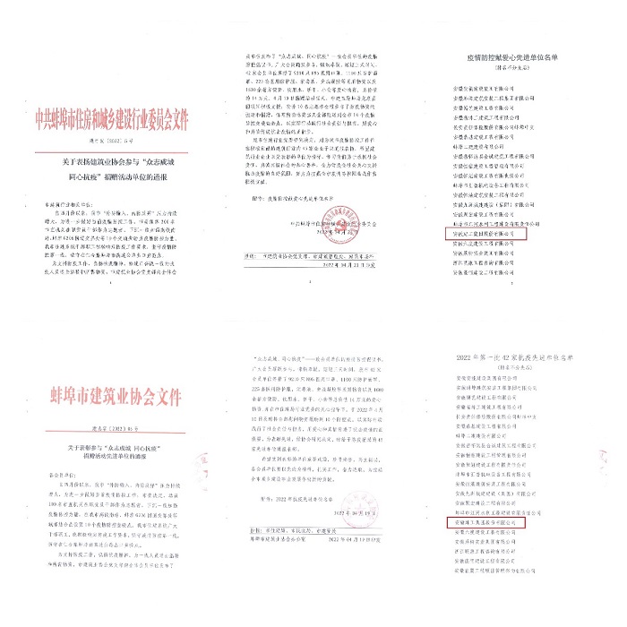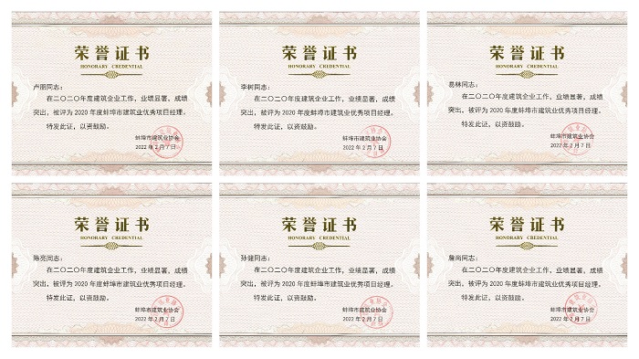 近日,中共蚌埠市住房和城乡建设行业委员会、蚌埠市建筑业协会分别发布通报,7003至尊全讯荣获蚌埠市优秀建筑业企业和2022年抗疫先进单位称号,对勇于承担社会责任、为疫情防控工作作出积极贡献等予以表彰。此外,安建总承包卢朋等6名同志荣获蚌埠市建筑业优秀项目经理称号。
